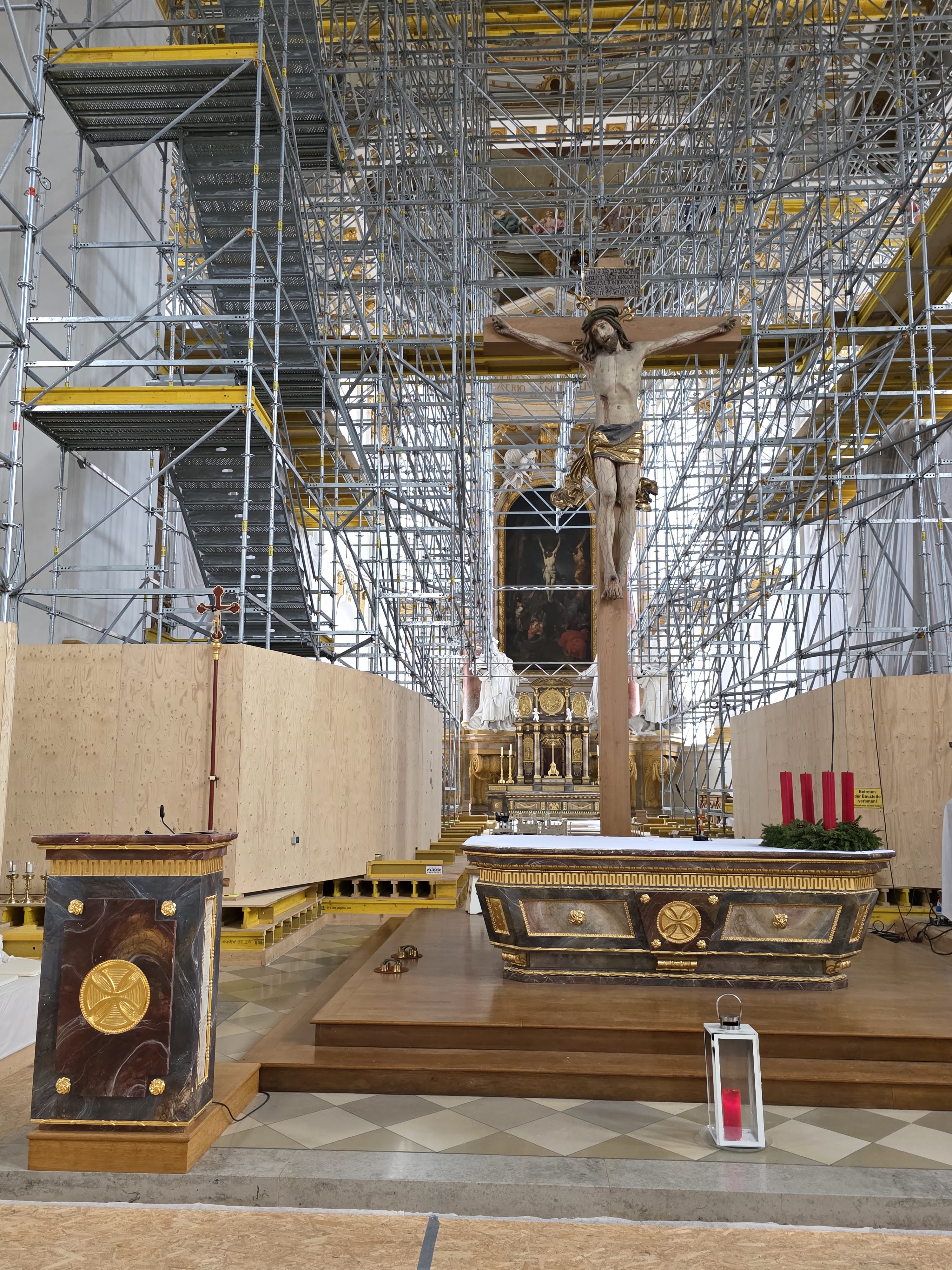 Zur Christmette in der eingerüsteten Wiblinger Basilika